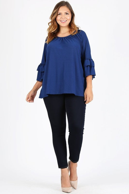 Knit 3/4 Sleeve Double Layer Ruffle Sleeve Top