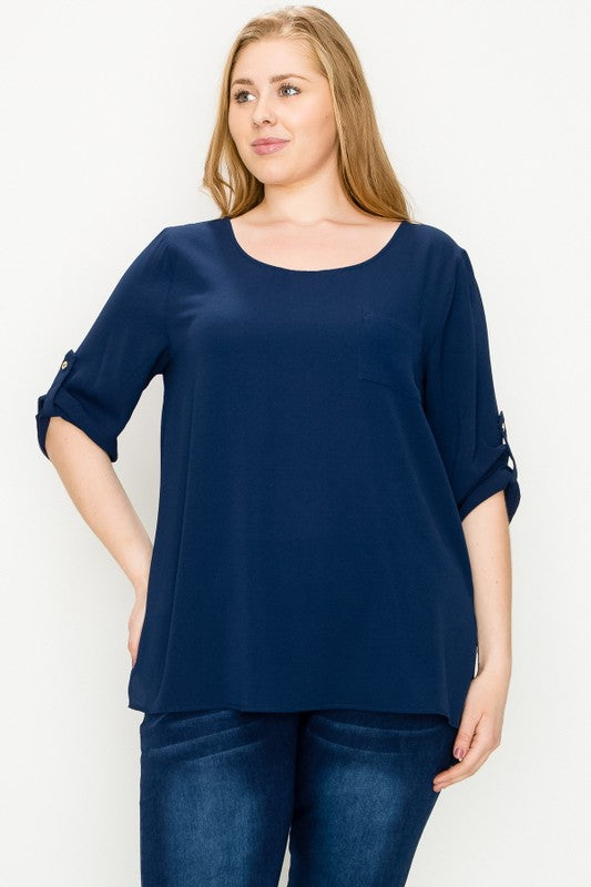 PLUS SIZE KOSHIBO ROLL UP SLEEVE TOP