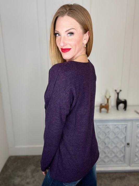 V-Neck Front Seam Sweater in Heather Ocean Teal