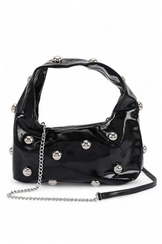 Metal Studded Top Hangle Patent Faux Leather Bag
