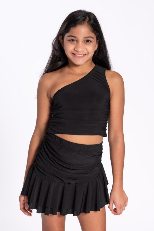 Girls Ruched One Shoulder Ruffle 2 Piece Dress Set