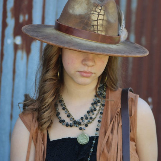 Double Lariat Turquoise Necklace w/ Copper Feather
