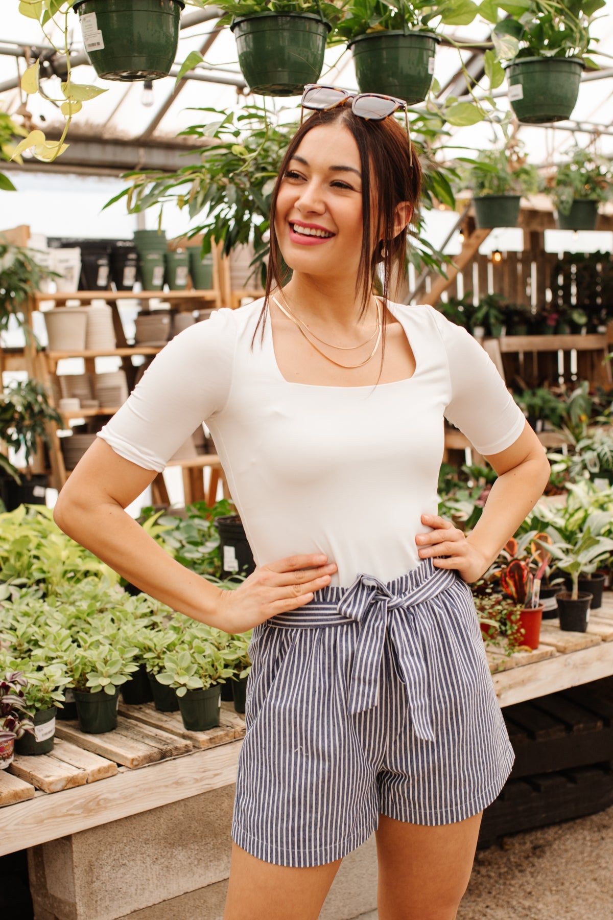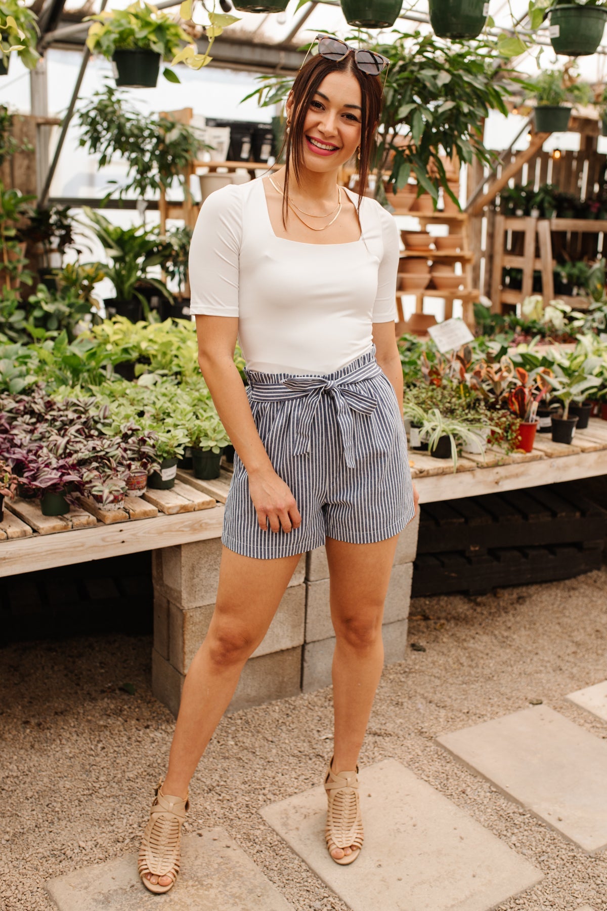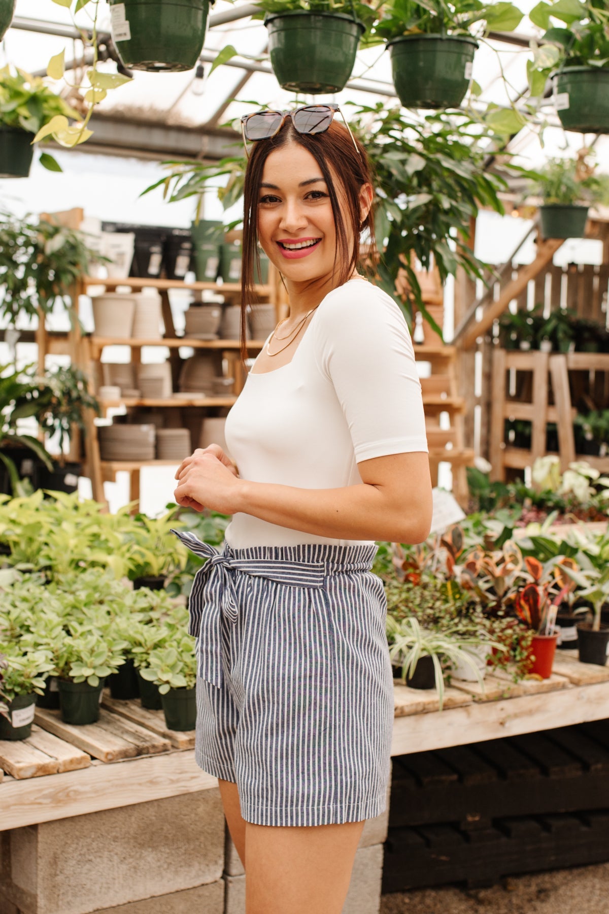 ¡Tu guardarropa de verano acaba de recibir una actualización elegante con los pantalones cortos Time Stood Still! Un patrón de rayas finas delinea un corte clásico de pantalones cortos y una silueta de bolsa de papel rematada con una moderna cintura anudada. ¡Combina estos lindos pantalones cortos con una blusa blanca y una chaqueta roja para una apariencia elegante y con estilo!